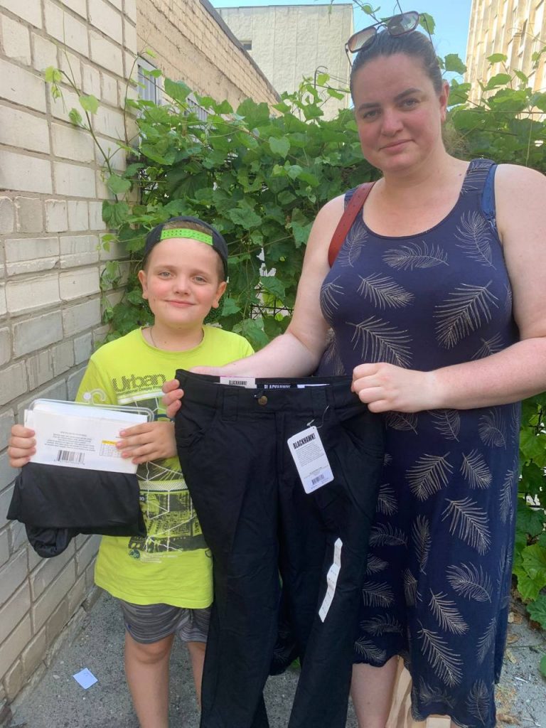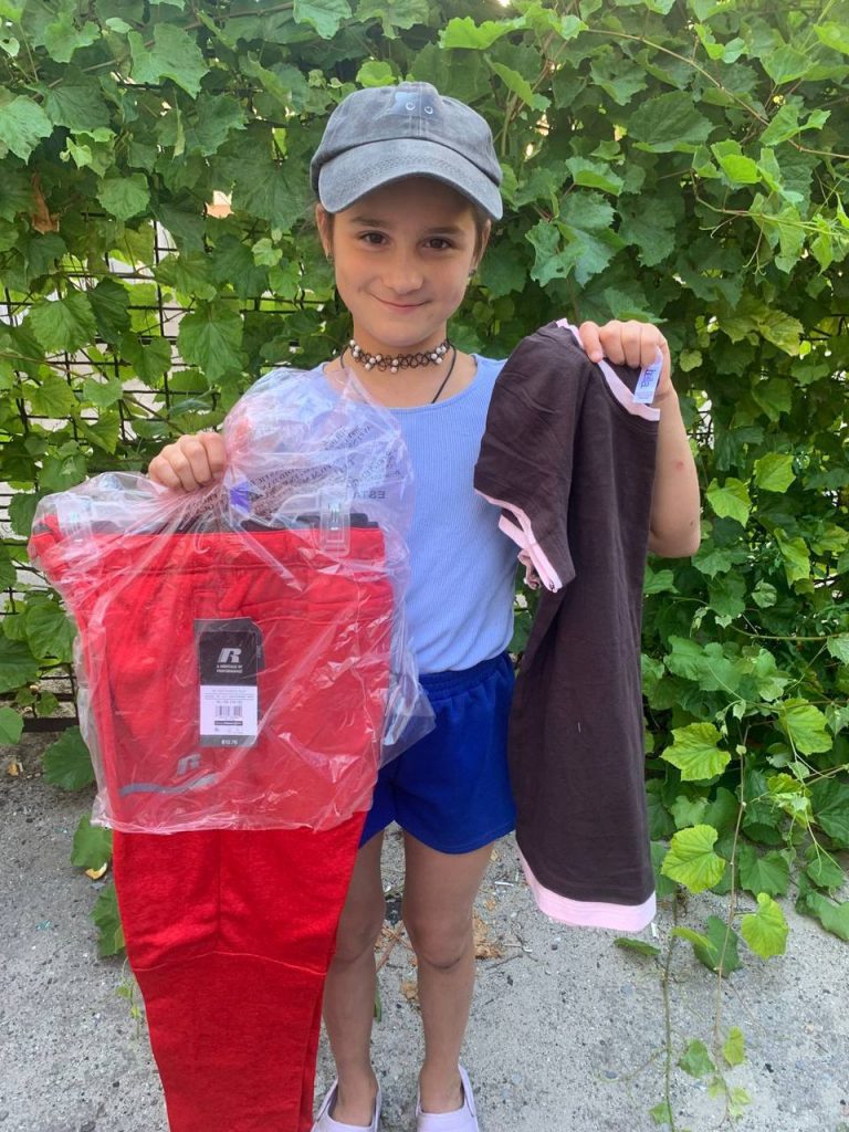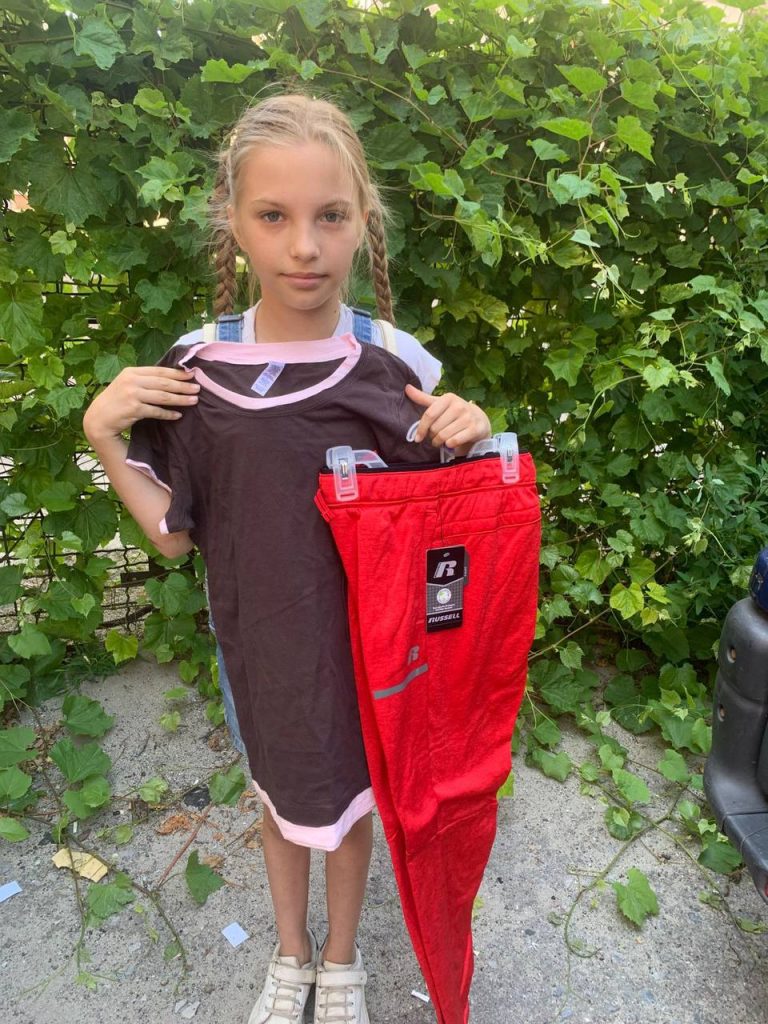 Цього тижня наша команда передала та розподілила сотні комплектів одягу : футболки, штани, плаття, шорти та інші необхідні речі – серед дітей, які постраждали внаслідок війни і яким допомагає наш фонд.